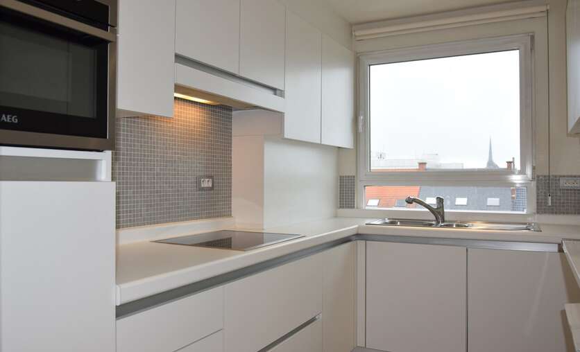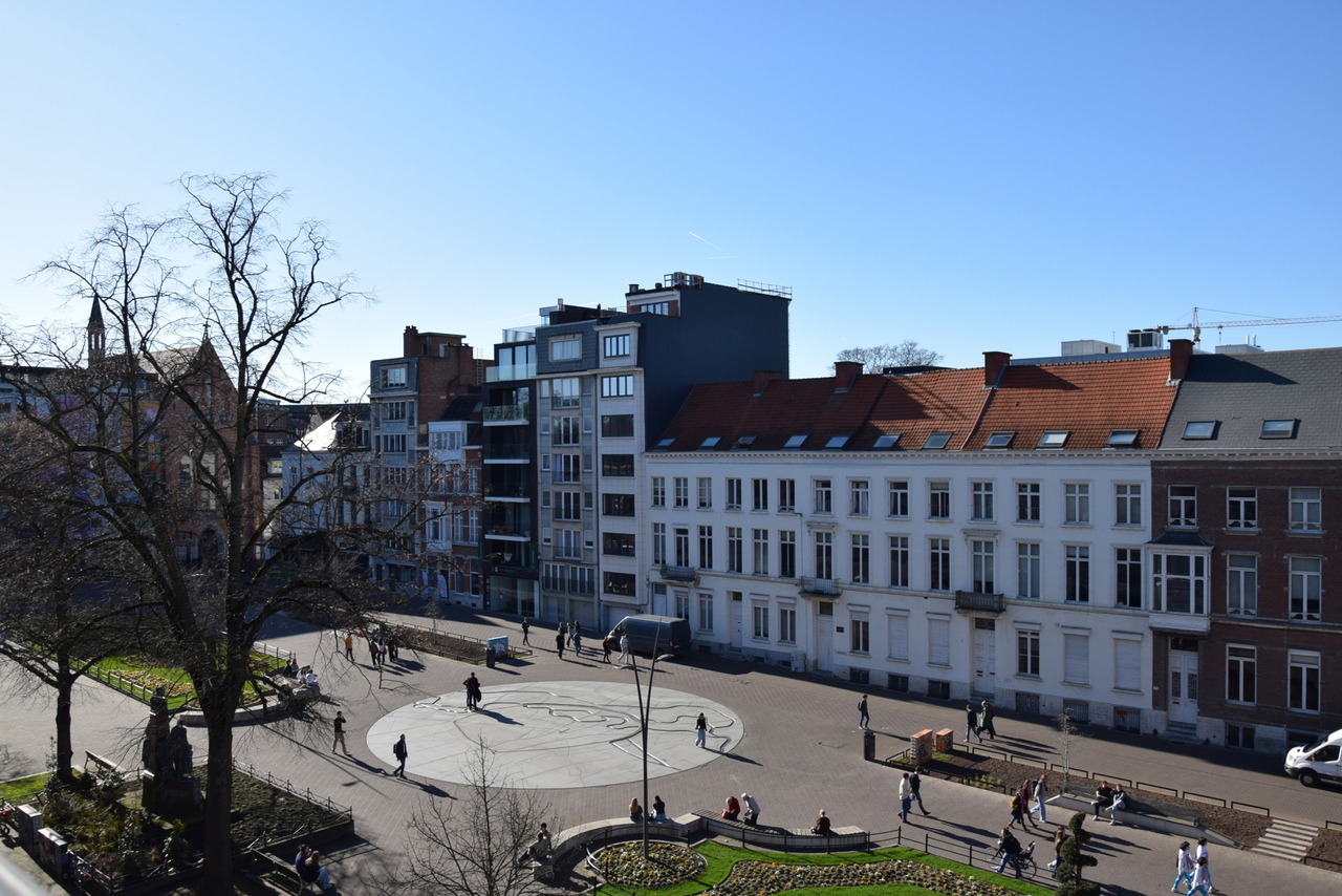 Prachtig appartement van 116m² met een schitterend uitzicht over het gezellige Herbert Hooverplein / Ladeuzeplein. Het appartement beschikt over een zeer ruime leefruimte en een volledig ingerichte keuken. Via de nachthal bereiken we een apart gastentoilet, badkamer met dubbele lavabo, ligbad en douche en 2 ruime slaapkamers met aansluitend een balkon.